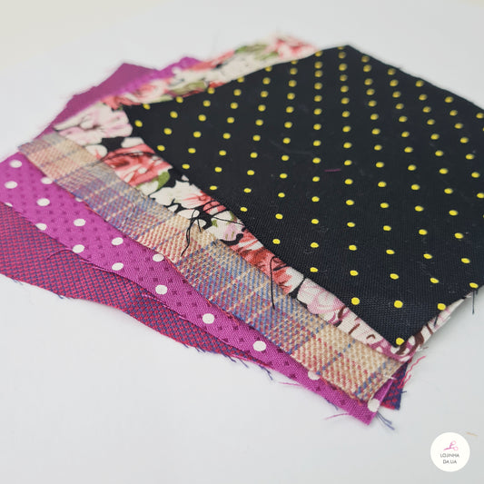 Kit com 7 tecidos MISTOS I 7 cm x 11,5 cm