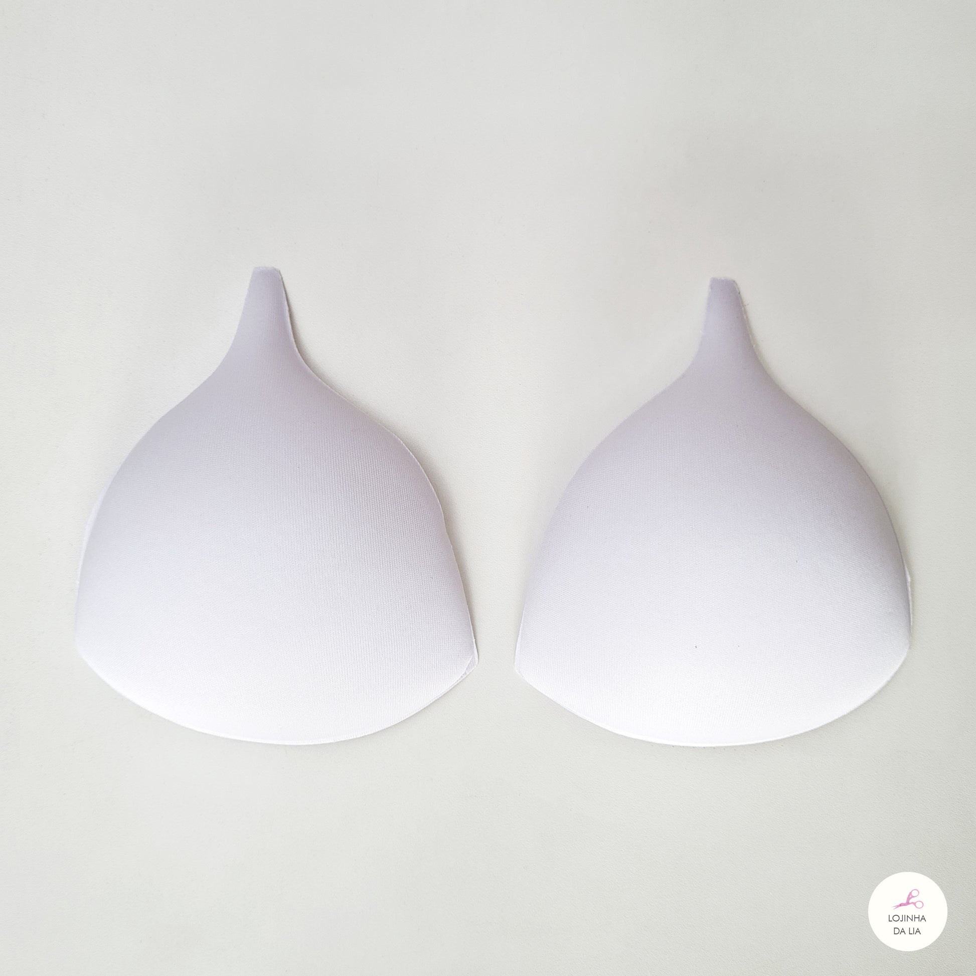 Par de bojos modelo biquíni. Feito com espuma rígida, é ideal para ser usado em lingerie, moda praia e vestidos de festa e casuais. Pode ser recortado para adequar seu tamanho.